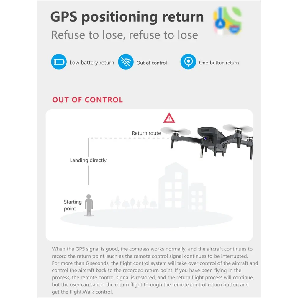 7.One key to return function makes it easily to find the way home. Failsafe Return to home.